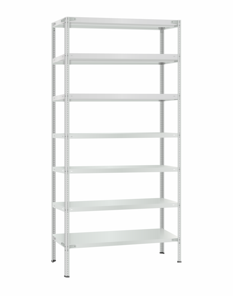 Полки МС Титан изготовлены из высокопрочной стали, покрыта полимерным порошковым покрытием светло серого цвета RAL 7035 типа шагрень